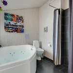 La Holiday Home Oksbol - 06 incluye un cuarto de baño con una bañera de hidromasaje y una ducha. Además, para tu comodidad, dispone de una secadora.